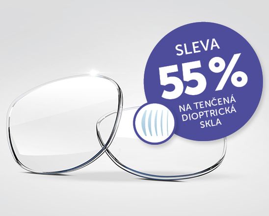 - Sleva 55 % platí na všechny tenčené brýlové čočky (indexy lomu 1.53, 1.6, 1.67 a 1.74). Nevztahuje se na čočky s indexem lomu 1.5, které nejsou tenčené a na skla MiYOSMART. Sleva je 50 %, plus dalších 5 % pro členy Oranžového klubu (platí i pro nové zákazníky) = celkem 55 %.